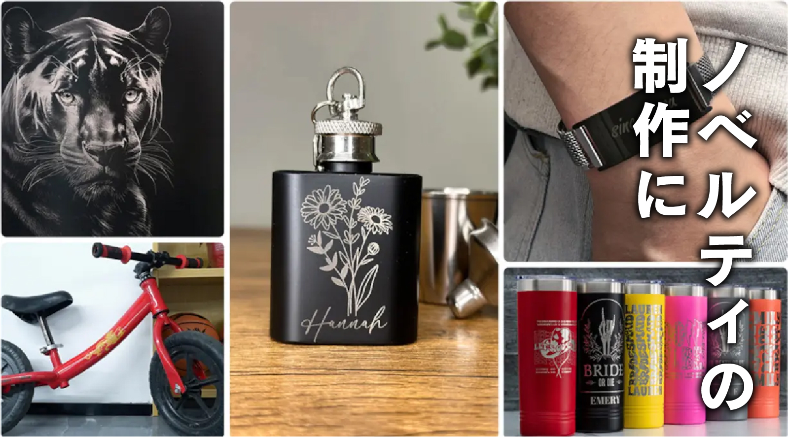 ノベルティの名入れなどの量産品の制作も、彫刻速度が早い【DIY STARTER 5W / 10W】ならお手の物。