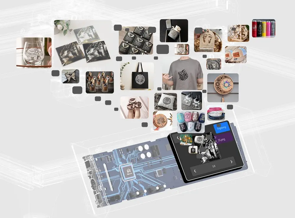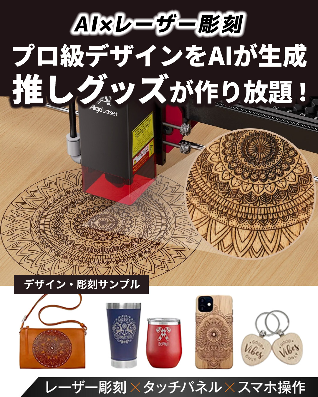 DIY STARTERは彫刻用デザインをAIが自動生成し、超精密な彫刻やカットを施せるプロ仕様のレーザー彫刻機です。