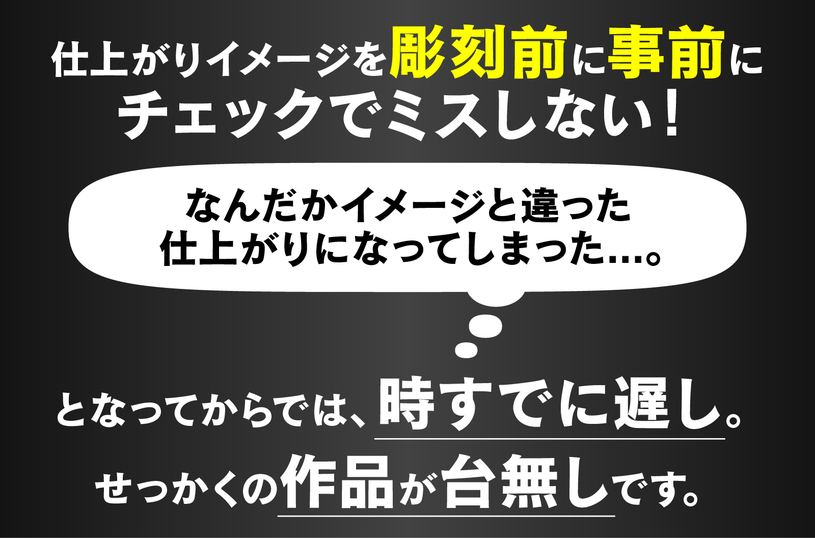 その仕上がりイメージが問題なければ、その画像をそのまま彫刻用データに変換すればOK!初めての彫刻作業でも、面倒なミスをすることなく彫刻できます。