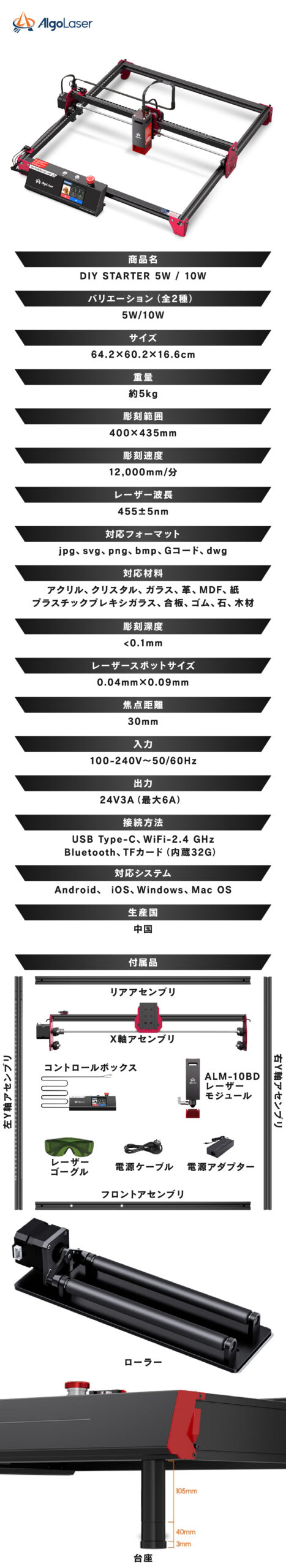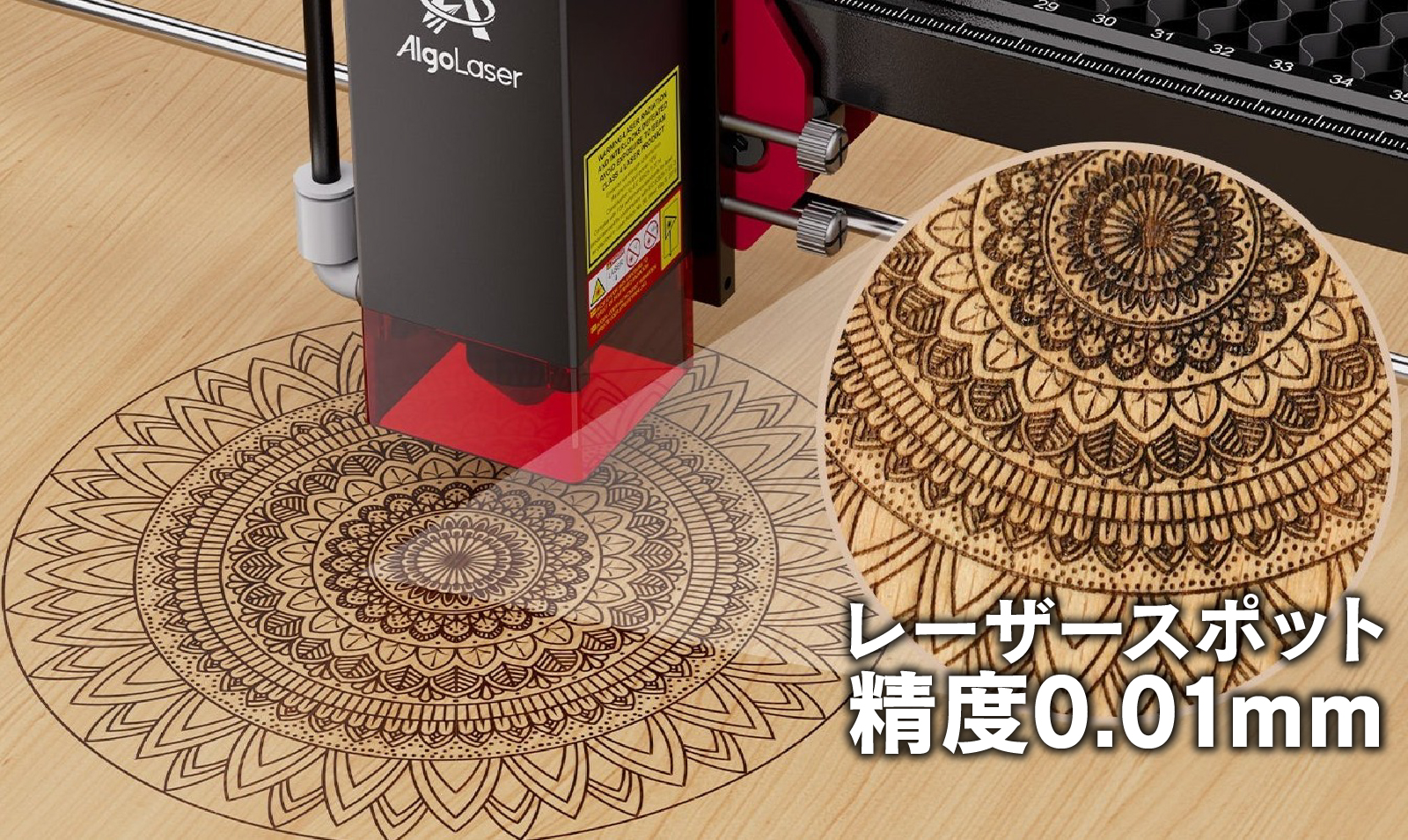 また一般的な家庭用レーザー彫刻機の精度は0.1mm前後に対し、【DIY STARTER 5W / 10W】のレーザースポットの精度はなんと0.01mm!