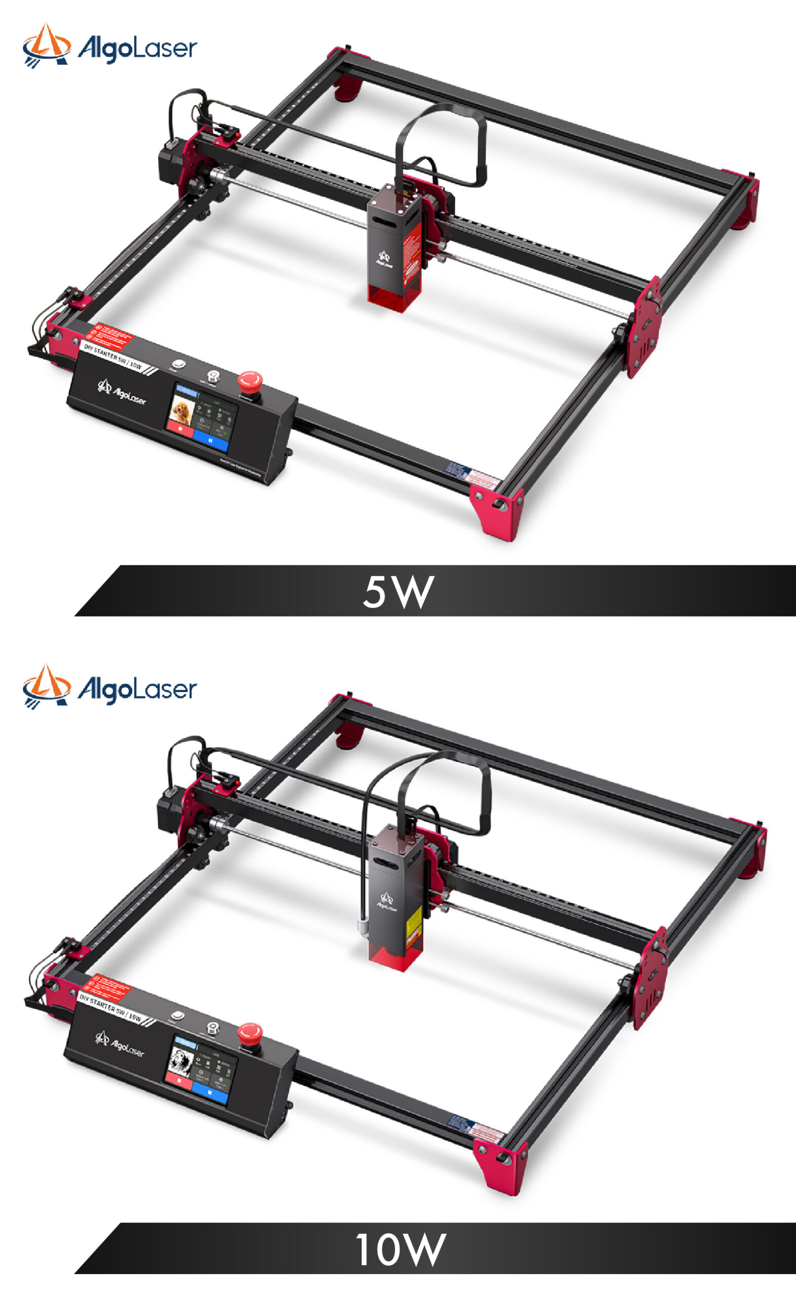 初心者でも扱いやすい低出力の5Wと、より高度でスピーディーな彫刻やカットが行える10Wの2タイプをご用意していす。用途に合わせてお選びください。