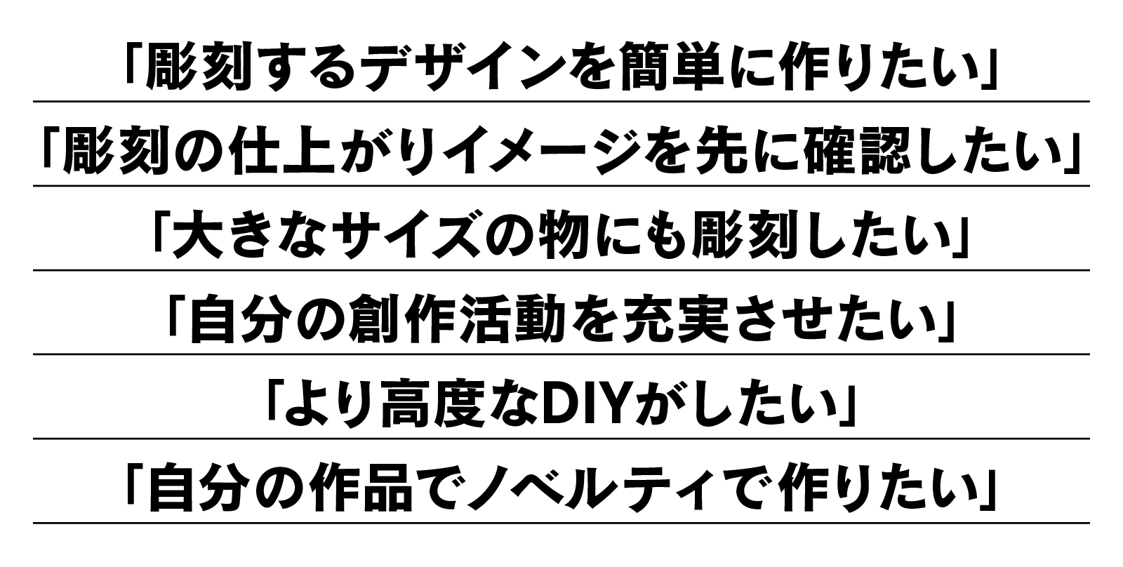 DIY STARTERあらかじめ用意された5つの項目にスマホで答えるだけで、プロ仕様の彫刻用デザインを自動生成。